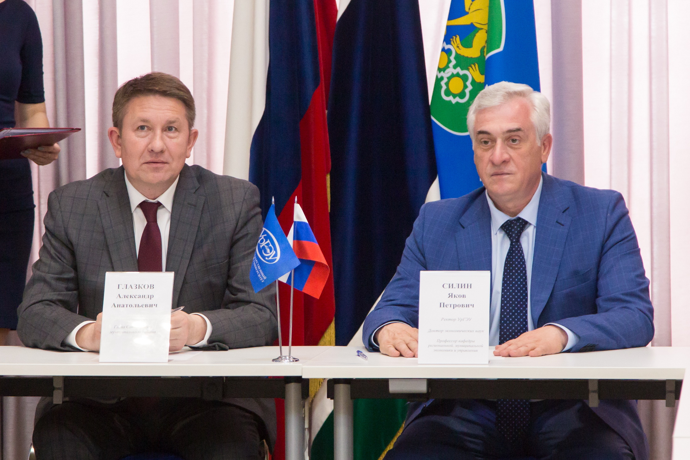 Яков Силин пригласил Александра Глазкова и его коллег выступить перед студентами Института государственного, муниципального управления и права УрГЭУ, поделиться опытом управления городом. К слову, в рамках соглашения планируется привлечение специалистов Саткинского муниципального района к работе в экзаменационных комиссиях по востребованным направлениям подготовки и специальностям, а также к независимой оценке качества подготовки выпускников.
