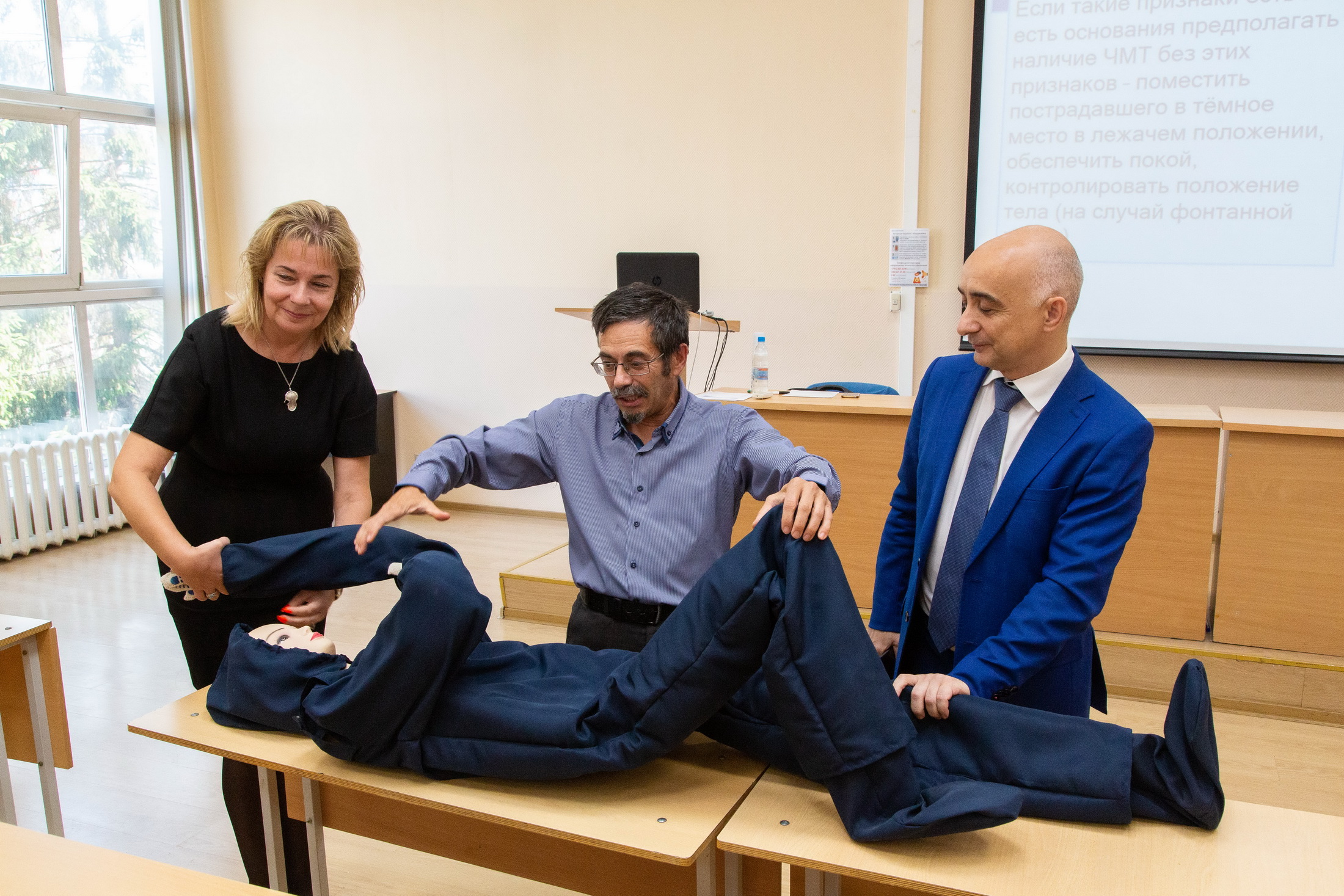 В ходе обучения сотрудники и преподаватели УрГЭУ узнали про организационно-правовые аспекты оказания первой помощи, про оказание первой помощи при отсутствии сознания, остановке дыхания и кровообращения у человека, про оказание первой помощи при наружных кровотечениях и травмах.